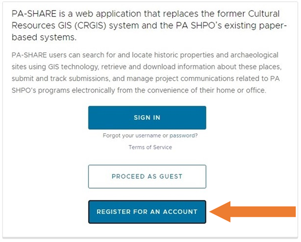 Note: The “Register for an Account” button is not to subscribe to PA-SHARE; it is only for registering for a Keystone Login.