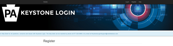 The Keystone Login “Register” website will open in a new tab in your browser.