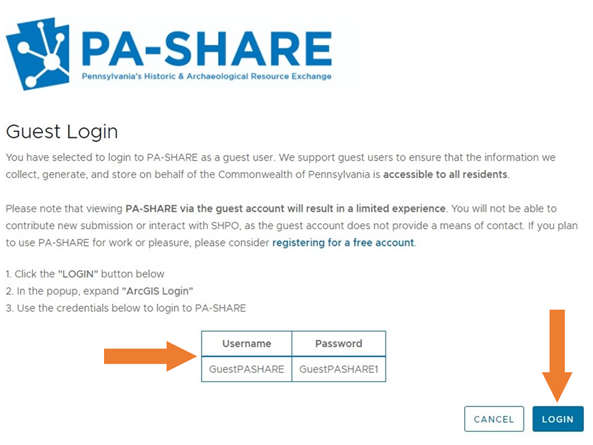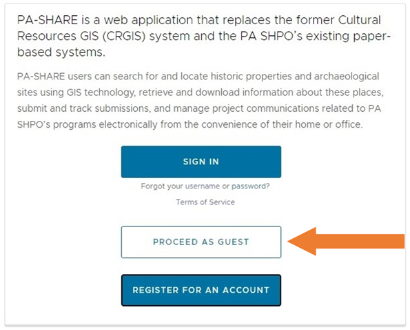 This section will outline the steps needed to sign in to PA-SHARE as a Guest user.